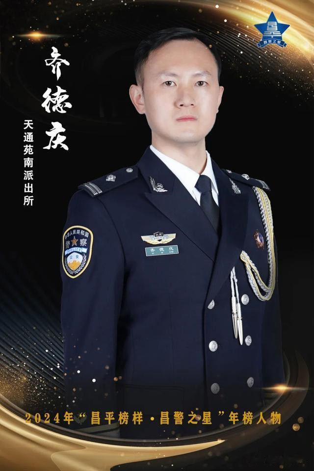 齐德庆,男,38岁,中共党员,2017年转业参加公安工作,现为昌平分局天通苑南派出所社区警务队民警。